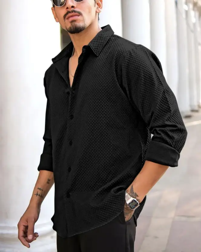 This stylish men’s casual shirt features a solid black design crafted to deliver a sharp, modern look. Its regular fit and premium fabric make it suitable for everyday wear, casual outings, and semi-formal occasions.